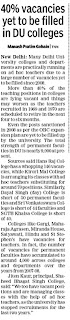 40% vacancies yet to be filled in DU colleges; Times of India, January 16, 2012, Page 7